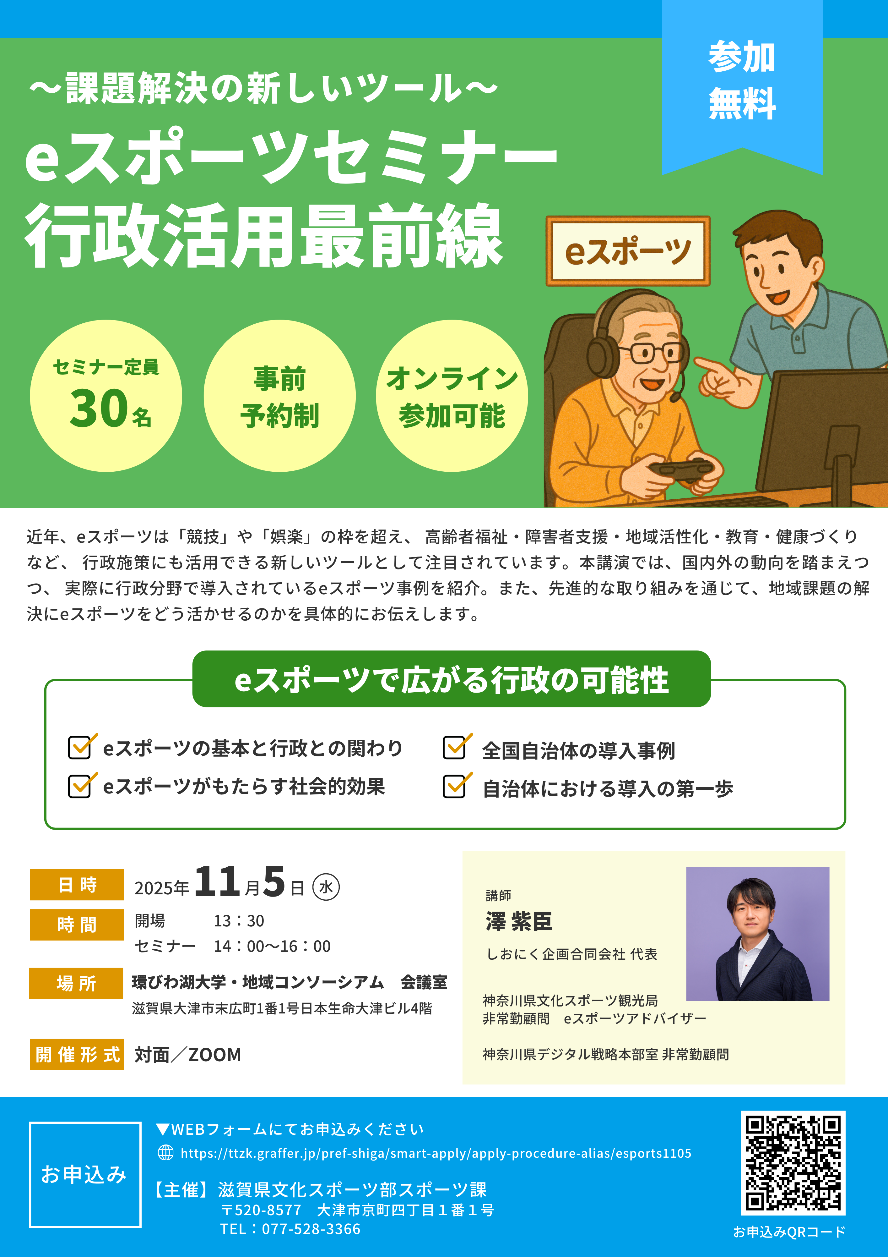 弊社代表が滋賀県にて「eスポーツセミナー 行政活用最前線」に登壇いたしました。